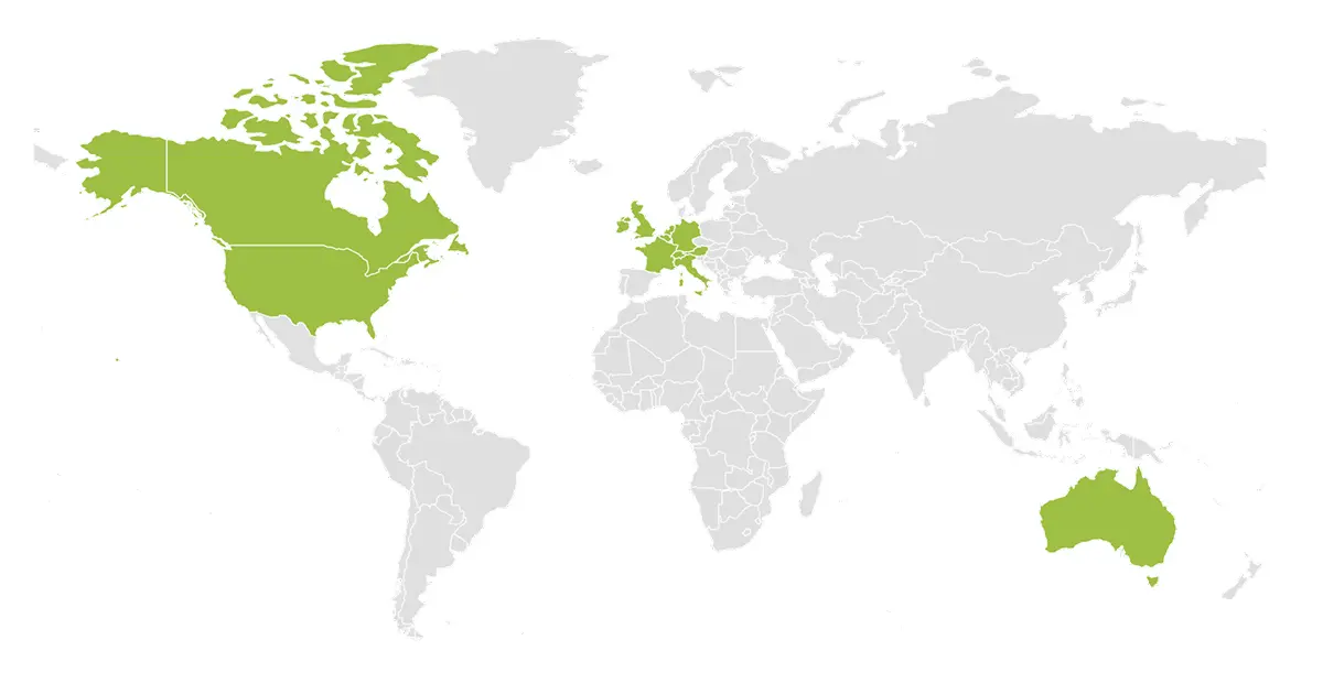 From the rugged terrain of the Australian Outback to the vibrant streets of Europe and the thriving economies of the Americas, our business spans an impressive 12 countries across 3 continents. Our global reach is a testament to our ambition and unwavering dedication to trading on a truly international scale.